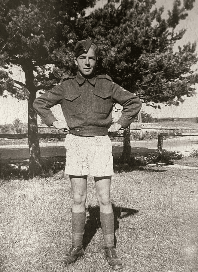 Roly joined the 1st Canadian Parachute Battalion, but underage recruits were sent home. However, this did not stop him—he enrolled in training as a motorcycle dispatch rider. During training, an officer suggested he go overseas to serve as a cavalryman in a regiment.