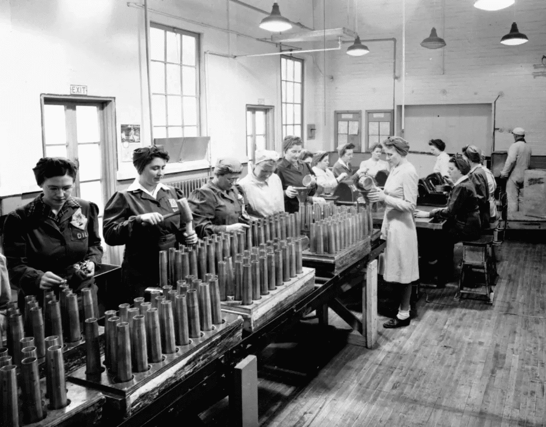 Beyond the military and government sectors, women were also increasingly employed in male-dominated industries. Many worked in manufacturing, producing essential components for military equipment and other wartime necessities. This was an especially demanding job for them, as few women had previously performed such work. Nonetheless, they admirably met the challenges of these male-oriented roles.