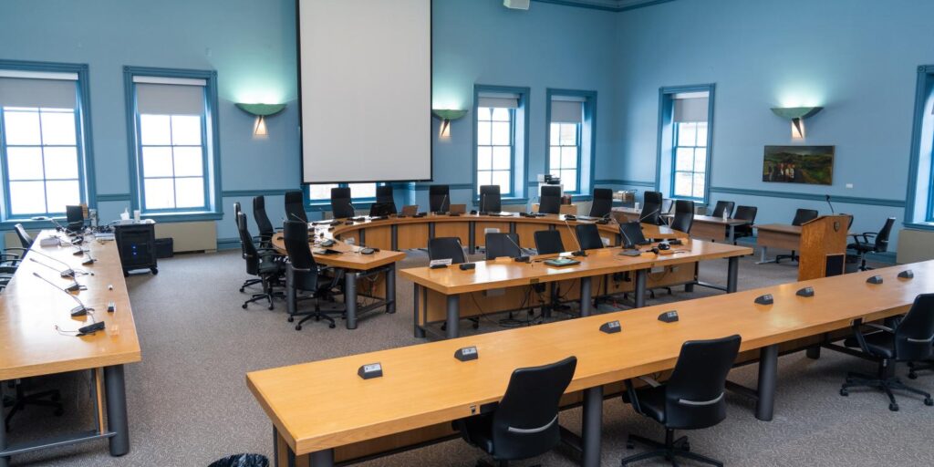 В качестве новой мэрии после объединения области и муниципалитетов было использовано здание регионального штаба. Способствовало выбору и центральное расположение строения.