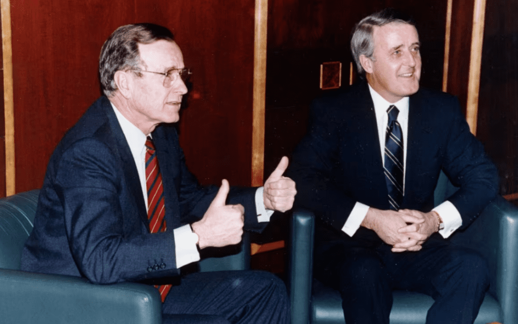 10 лютого 1989 року він відвідав Оттаву з робочим візитом. Під час офіційного приїзду президента до Оттави пройшла зустріч з прем’єр-міністром Малруні. Наступний візит до Оттави пройшов 13-14 березня 1991 року. Це була ще одна зустріч з прем’єр-міністром, під час якої вдалося підписати Угоду про якість повітря між двома країнами — Канадою та США.